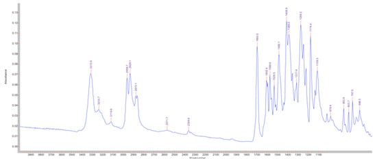 In accordance with the literature [32], the infrared spectrum allows the identification of the three main components of pollen based on the different vibrational bands: