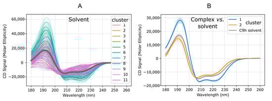 - Drew, E.D.; Janes, R.W. PDBMD2CD: Providing predicted protein circular dichroism spectra from multiple molecular dynamics-generated protein structures. Nucleic Acids Res. 2020, 48, W17–W24. [Google Scholar] [CrossRef]