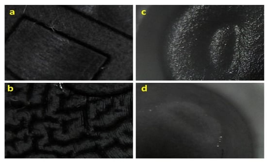 Micrographs obtained with a digital microscope at 200× magnification. Key: (a) JEA at time zero; (b) JEA after 36 months of exposition to the midazolam solution; (c) JEN at time zero; (d) JEN after 36 months of exposition to the midazolam solution.