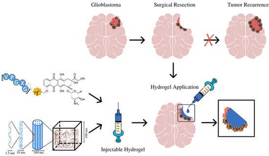 - Bastiancich, C.; Danhier, P.; Preat, V.; Danhier, F. Anticancer drug-loaded hydrogels as drug delivery systems for the local treatment of glioblastoma. J. Control. Release Off. J. Control. Release Soc. 2016, 243, 29–42. [Google Scholar] [CrossRef]