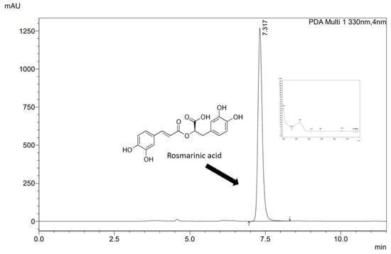 Rosmarinic acid (RA) is a natural phenolic acid in many plants, including herbs and spices such as rosemary, oregano, sage, thyme, and lemon balm. It is a significant antioxidant with anti-inflammatory, antidiabetic, neuroprotective, anticancer, antimicrobial, and antiviral properties [1,2,3,4]. Its pro-health properties have been studied through in vitro tests on enzymes and cell lines, as well as in vivo [5,6,7].