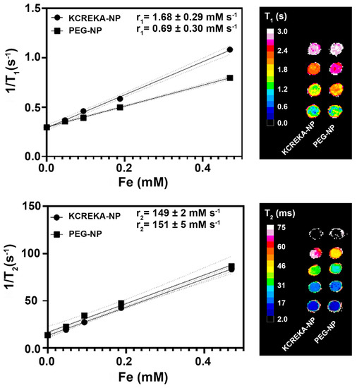 2.5. Measurements of Nanoparticles T1 and T2 Relaxivities