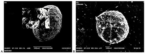 2.3. Morphological Characterization of CS-Gli-Sil Microparticles