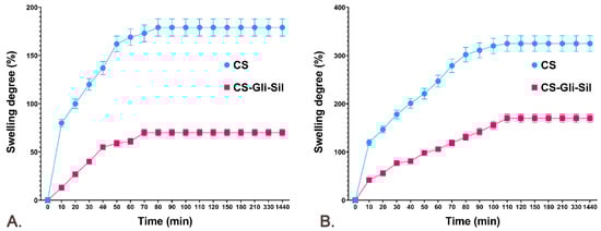 2.6.1. The CS and CS-Gli-Sil Microparticle SD% in Distilled Water