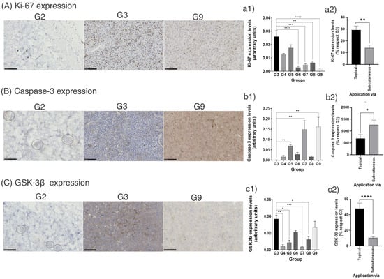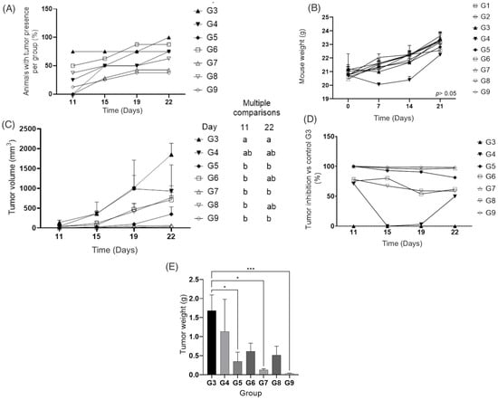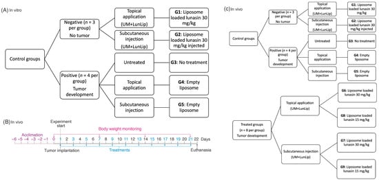 3.2. Tumor Development in an Allograft Model Using C57BL/6 Mice Subjected to Different Liposome Treatments