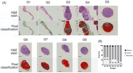 3.2.2. H&E Image Analysis Resulted in Large Necrotic Tumor Areas