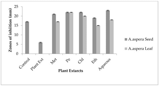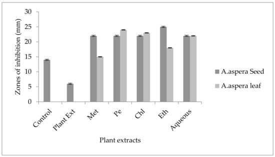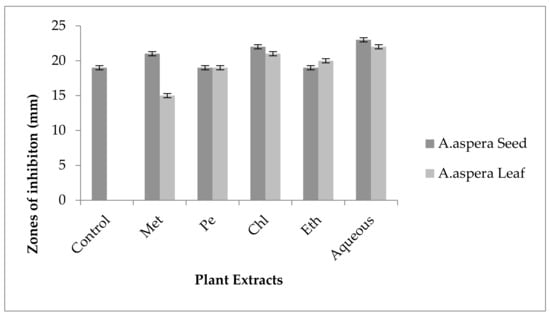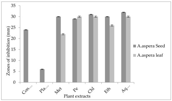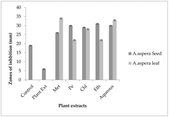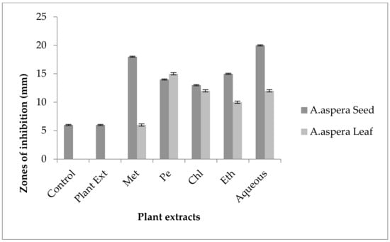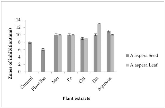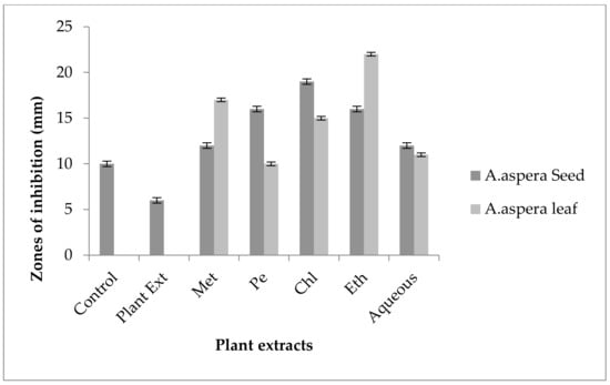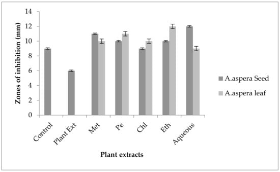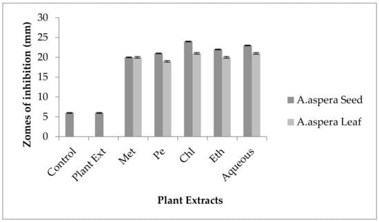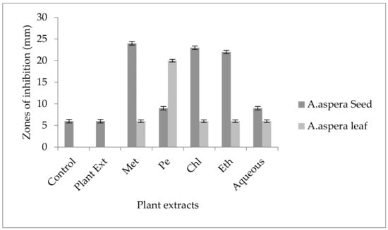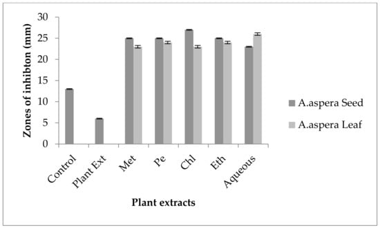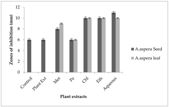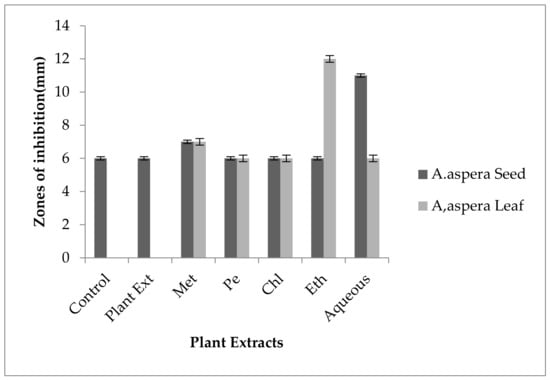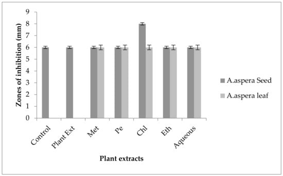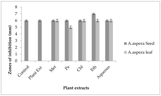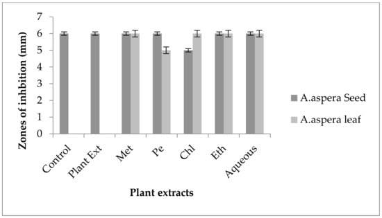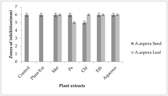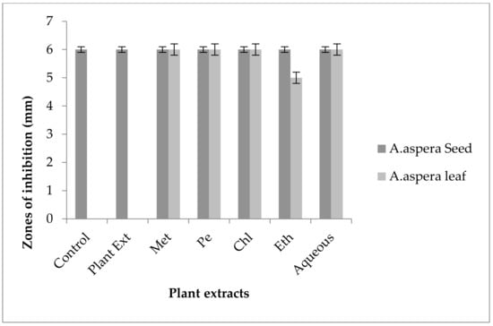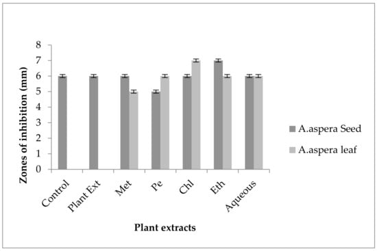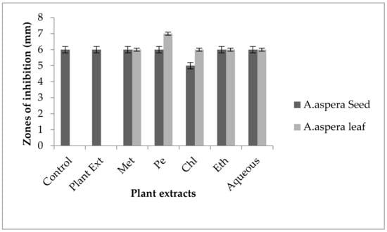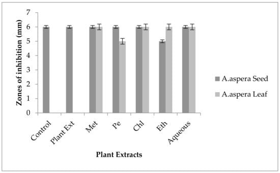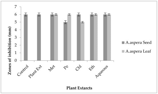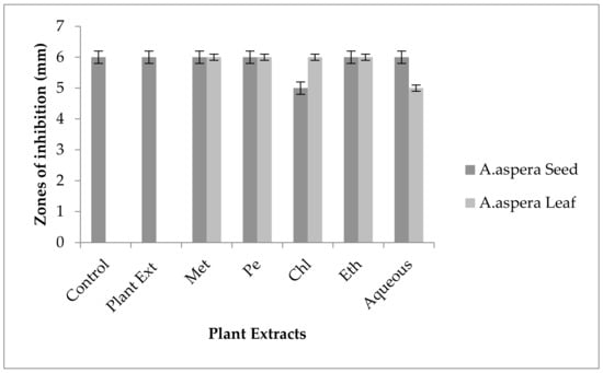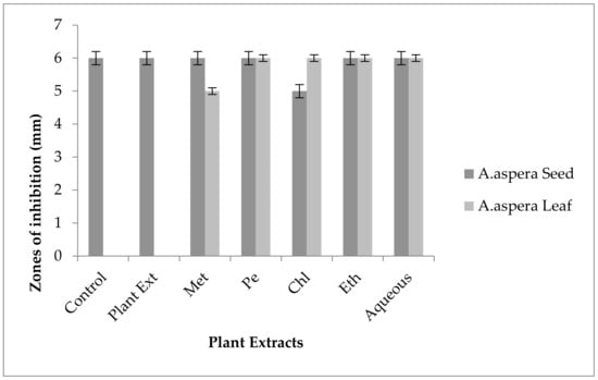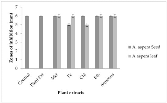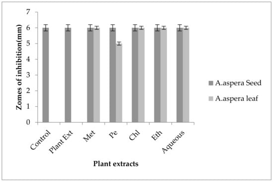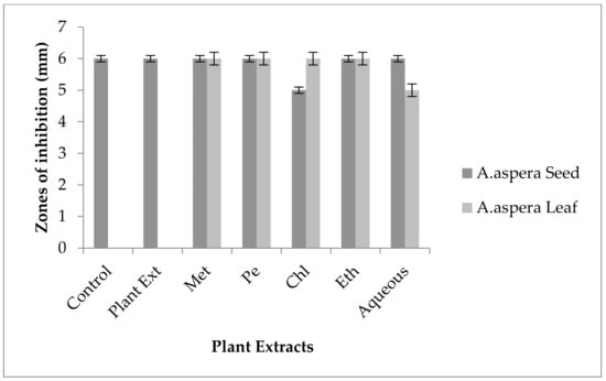 | Chloroform extract | 6 ± 0 | 6 ± 0 | 6 ± 0 | 6 ± 0 | 6 ± 0 |