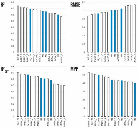 | Many descriptors (>50) | JMSA_A (117/73/Cons. MLR) JMSA_B (117/73/extra tree reg.) JMSA_C (117/73/RFR) JHUNC_A (312/NA/ANN)  | PMSA_A (2220/168/RBF) PMSA_C (7841/164, RBF) MLKC_A-C (881/NA/light GMB) RF [20] (4449/NA/RFR)  |