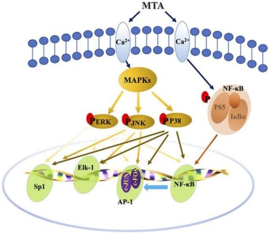 Schematic diagram of the activation of NF-κB and MAPK pathways by MTA treatment. Reprinted/adapted with permission from Ref. [23]. 2018, Yu, J.