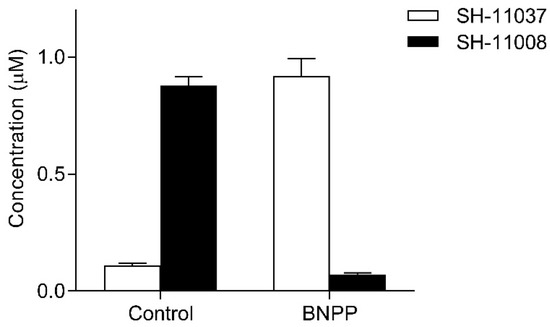 2.4. Chemical Inhibition of SH-11037 Hydrolysis