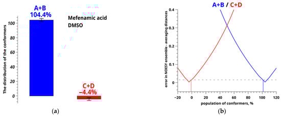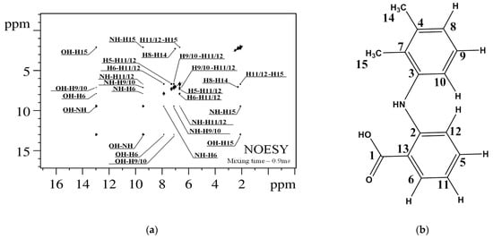 - Belov, K.V.; Dyshin, A.A.; Krestyaninov, M.A.; Efimov, S.V.; Khodov, I.A.; Kiselev, M.G. Conformational preferences of tolfenamic acid in DMSO-CO2 solvent system by 2D NOESY. J. Mol. Liq. 2022, 367, 120481. [Google Scholar] [CrossRef]