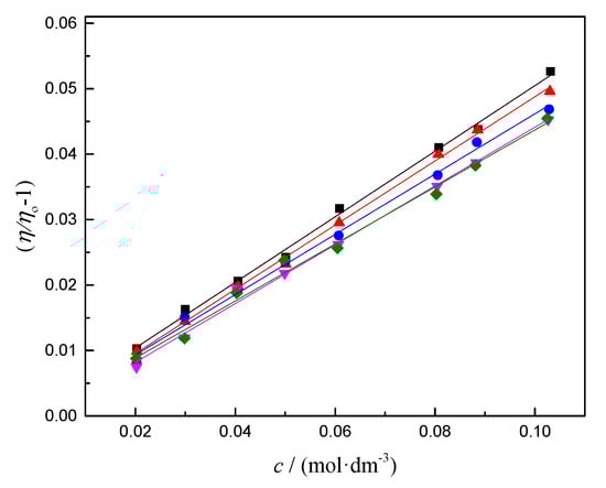 - Jones, G.; Dole, M. The viscosity of aqueous solutions of strong electrolytes with special reference to barium chloride. J. Am. Chem. Soc. 1929, 51, 2950–2964. [Google Scholar] [CrossRef]