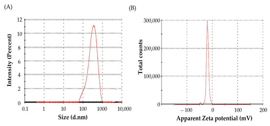 (A) Particle size; and (B) zeta potential of silver nanoparticles.