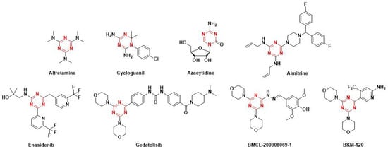 1,3,5-Triazine containing drugs in market and derivatives in phase Ⅲ clinical trials.