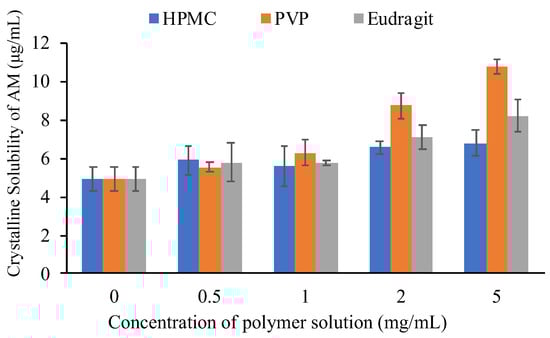 Crystalline Solubility of AM at 25 °C in each polymer solution at the concentration of 500 μg/mL.