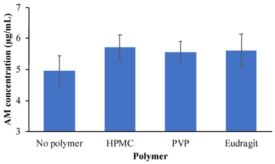 The concentration of AM in the phosphate buffer at pH 7.4 and each polymer solution n = 3, mean ± standard deviation).