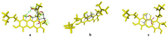 In the case of the PVP and eudragit, the results obtained in the in silico study correspond to that of the FT-IR measurement, where carbonyl group spectra of AM were shifted at around 1350–1750 cm−1, indicating their intermolecular interaction. These data supported that the interaction between AM and PVP, as well as eudragit, can maintain the AM in a supersaturated state and inhibit the nucleation with crystal growth of AM, despite their different abilities. This showed that an in silico study could be used as supporting data and initial hypotheses to state the formation of amorphous solid dispersion between AM, PVP, and eudragit. However, the data were not used in the HPMC case, which cannot maintain the initial supersaturation level of AM. A previous study reported that the drug and HPMC easily passed through phase separation in the presence of water [23]. This indicated that absorbed water would accelerate the phase separation of AM and HPMC in the supersaturated solution.