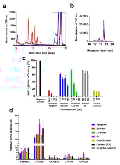 3.2.1. Screening of Materials Inhibiting the Hydroxylation of Retinoic Acid Using a HPLC-Based Method