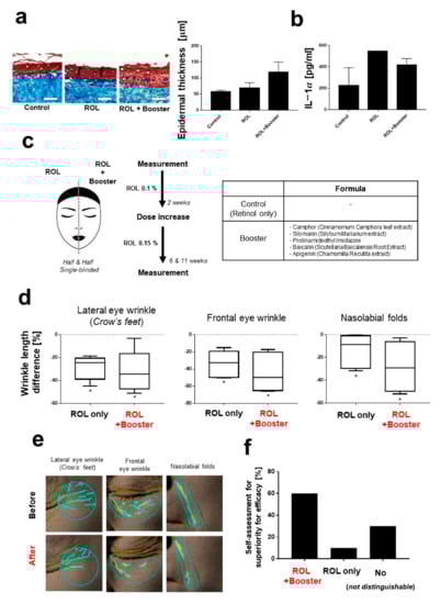 - Kim, J.; Kim, J.; Jongudomsombat, T.; Kim BS, E.; Suk, J.; Lee, D.; Lee, J.H. The efficacy and safety of multilamellar vesicle containing retinaldehyde: A double-blinded, randomized, split-face controlled study. J. Cosmet. Dermatol. 2021, 20, 2874–2879. [Google Scholar] [CrossRef] [PubMed]