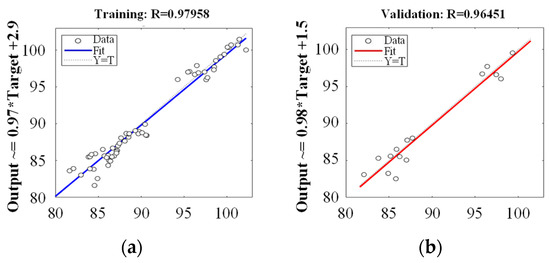 where N is the number of training data, is the predicted output, is the experimental results, is the average predicted output, and is the average experimental results.