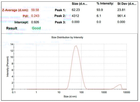 DLS analysis. The size of synthesized NPs is 59 nm.