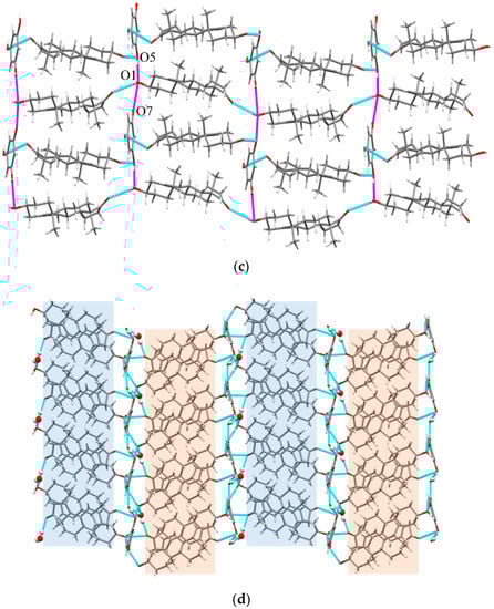 (a,b) 1D, (c) 2D, and (d) 3D supramolecular interactions of DHEA-PG-DH.