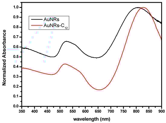 The Au concentration of CTAB-AuNRs and AuNRs-C12 was calculated by UV–VIS analysis by measuring the absorbance of the sample at the fixed wavelength of 400 nm [].