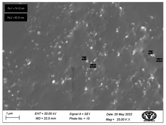 The optimized nanoemulsion was subjected to SEM to determine the particle size and uniformity, and the result obtained is shown in Figure 6. It was observed that particles were uniformly distributed with very little aggregation. Most of the particles were discrete and were spherical in shape with a size less than 200 nm.