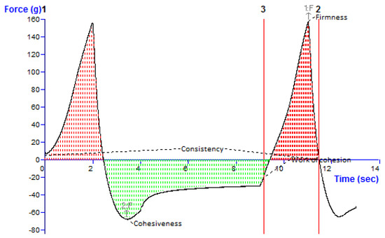 Texture analysis graph of QCT@NG representing the consistency, firmness, cohesiveness and work of cohesion.