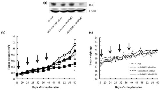 - Okamoto, A.; Asai, T.; Hirai, Y.; Shimizu, K.; Koide, H.; Minamino, T.; Oku, N. Systemic administration of siRNA with anti-HB-EGF antibody-modified lipid nanoparticles for the treatment of triple-negative breast cancer. Mol. Pharm. 2018, 15, 1495–1504. [Google Scholar] [CrossRef] [PubMed]