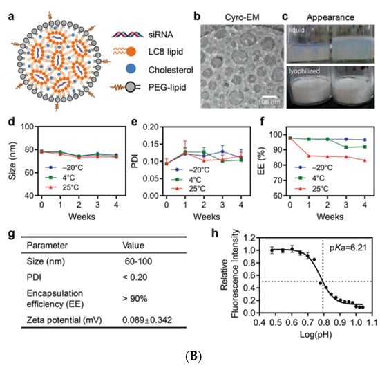 - Sato, Y.; Hatakeyama, H.; Hyodo, M.; Harashima, H. Relationship between the physicochemical properties of lipid nanoparticles and the quality of siRNA delivery to liver cells. Mol. Ther. 2016, 24, 788–795. [Google Scholar] [CrossRef]