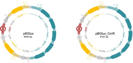 2.2. Construction of Versatile Tagging Plasmids, pBGlux and pBGlux_CmR