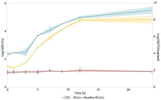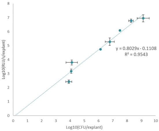 2.5. Establishing A Correlation between the RLU on the Explant and the CFUs Recovered from the Explant