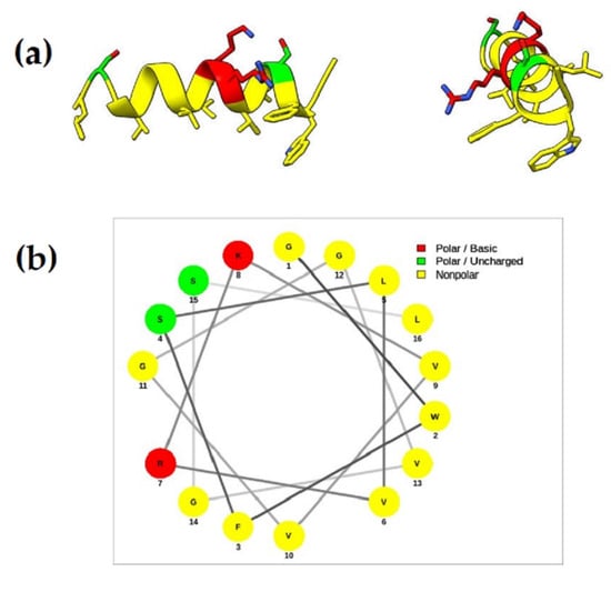 - Mól, A.R.; Castro, M.S.; Fontes, W. NetWheels: A Web Application to Create High Quality Peptide Helical Wheel and Net Projections. bioRxiv 2018. [Google Scholar] [CrossRef]