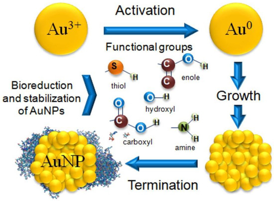 - Castro, L.; Blázquez, M.L.; Muńoz, J.A.; González, F.G.; Ballester, A. Mechanism and applications of metal nanoparticles prepared by bio-mediated process. Rev. Adv. Sci. Eng. 2014, 3, 199–216. [Google Scholar] [CrossRef]