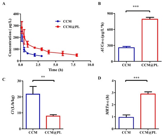 3.2. In Vivo Pharmacokinetics and Biodistribution