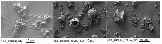 Powders | Salbutamol (% w/w) | Soluplus (% w/w) | Leucine (% w/w) |