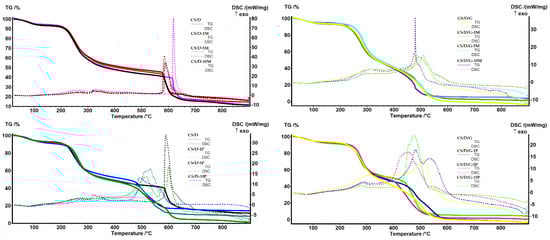 TG-DSC curves for the CS/D and CS/D/G hydrogels.