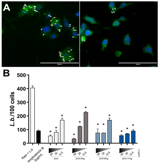 Chicago/Turabian StyleBarbosa, Rafaela Miranda, Malu Mateus Santos Obata, José Rodrigues do Carmo Neto, Rhanoica Oliveira Guerra, Anna Victória Bernardes e Borges, Rafael Obata Trevisan, Letícia Cirelli Ruiz, Júlia de Moura Bernardi, Ana Carolina de Morais Oliveira-Scussel, Sarah Cristina Sato Vaz Tanaka, and et al. 2022. "Development of Ag-ZnO/AgO Nanocomposites Effectives for Leishmania braziliensis Treatment" Pharmaceutics 14, no. 12: 2642. https://doi.org/10.3390/pharmaceutics14122642