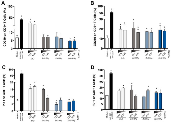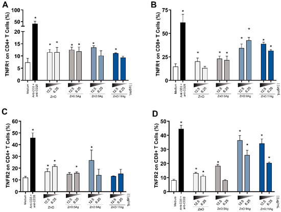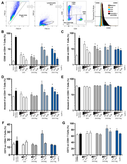 3.5. Ag-ZnO/AgO Activate LTCD4+ and LTCD8+ and Induce Low Cytotoxic Levels at the Lowest Concentrations