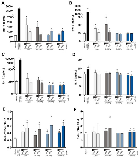 - Simón-Vázquez, R.; Lozano-Fernández, T.; Dávila-Grana, A.; González-Fernández, A. Metal oxide nanoparticles interact with immune cells and activate different cellular responses. Int. J. Nanomed. 2016, 11, 4657–4668. [Google Scholar] [CrossRef]