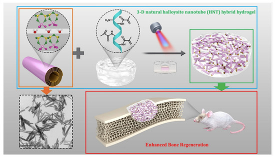- Huang, K.; Ou, Q.; Xie, Y.; Chen, X.; Fang, Y.; Huang, C.; Wang, Y.; Gu, Z.; Wu, J. Halloysite Nanotube Based Scaffold for Enhanced Bone Regeneration. ACS Biomater. Sci. Eng. 2019, 5, 4037–4047. [Google Scholar] [CrossRef]