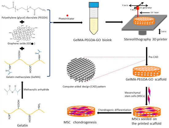 - Zhou, X.; Nowicki, M.; Cui, H.; Zhu, W.; Fang, X.; Miao, S.; Lee, S.J.; Keidar, M.; Zhang, L.G. 3D Bioprinted Graphene Oxide-Incorporated Matrix for Promoting Chondrogenic Differentiation of Human Bone Marrow Mesenchymal Stem Cells. Carbon N. Y. 2017, 116, 615–624. [Google Scholar] [CrossRef]