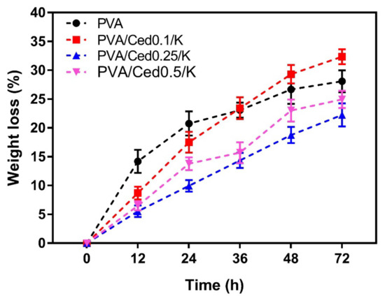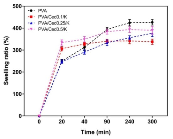 - Sung, J.H.; Hwang, M.R.; Kim, J.O.; Lee, J.H.; Kim, Y.I.; Kim, J.H.; Chang, S.W.; Jin, S.G.; Kim, J.A.; Lyoo, W.S.; et al. Gel characterisation and in vivo evaluation of minocycline-loaded wound dressing with enhanced wound healing using polyvinyl alcohol and chitosan. Int. J. Pharm. 2010, 392, 232–240. [Google Scholar] [CrossRef]