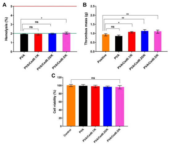- Fan, X.; Li, Y.; Li, N.; Wan, G.; Ali, M.A.; Tang, K. Rapid hemostatic chitosan/cellulose composite sponge by alkali/urea method for massive haemorrhage. Int. J. Biol. Macromol. 2020, 164, 2769–2778. [Google Scholar] [CrossRef]