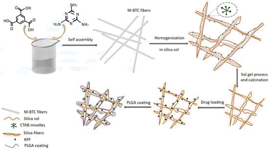 Melamine (99%) was purchased from Alfa Aesar. Benzene-1,3,5-tricarboxylic acid (95%, BTC), tetraethylorthosilicate (98%, TEOS), oxalic acid (98%), as well as cetyltrimethylammonium (≥98%, CTAB) were bought from Sigma-Aldrich. Poly (D, L-lactide-co-glycolide) (PLGA) RG 503 (M.W. 24000) was purchased from Boehringer Ingelheim. Tert-butanol was provided by Merck. Acetone (≥99.8%,) and ethanol were supplied by Fisher Scientific. Ketoprofen (KPF) was purchased from Fluorochem Ltd. All chemicals were analytical grade and used without further treatment.