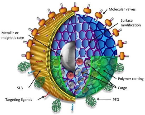 - Giret, S.; Man, M.W.C.; Carcel, C. Mesoporous-Silica-Functionalized Nanoparticles for Drug Delivery. Chem.-A Eur. J. 2015, 21, 13850–13865. [Google Scholar] [CrossRef]