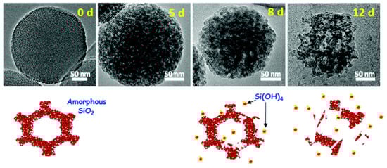 - Croissant, J.G.; Fatieiev, Y.; Khashab, N.M. Degradability and Clearance of Silicon, Organosilica, Silsesquioxane, Silica Mixed Oxide, and Mesoporous Silica Nanoparticles. Adv. Mater. 2017, 29, 1604634. [Google Scholar] [CrossRef]