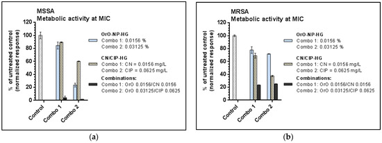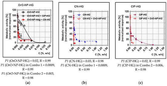 3.4. Metabolic Activity of OrO-NP, Gentamicin and Ciprofloxacin and Combinations in Hydrogels