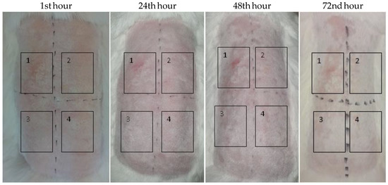 3.6. Evaliuation of the Skin Irritaion Potential of Synergistic Combinations between OrO-NP and Gentamicin or Ciprofloxacin in Hydrogels